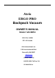 Atrix ERGO PRO Backpack Vacuum OWNER’S MANUAL Model: VACBPAI 120V 12A, 1400W ETL US Canada Atrix International, Inc. 1350 Larc Industrial Blvd. Burnsville, MN 55337 www.atrix.com sales@atrix.com 952.894.6154 Tel 800.222.6154 Toll Free Tel 952.894.