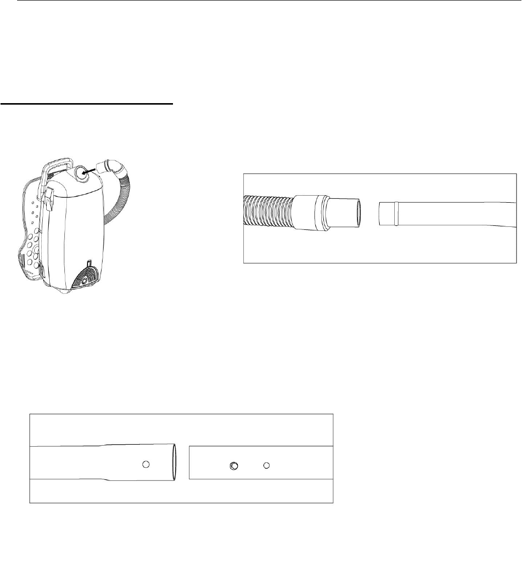 • To connect the hose and attachment wand, slide the hose over the hose end wand attachment and