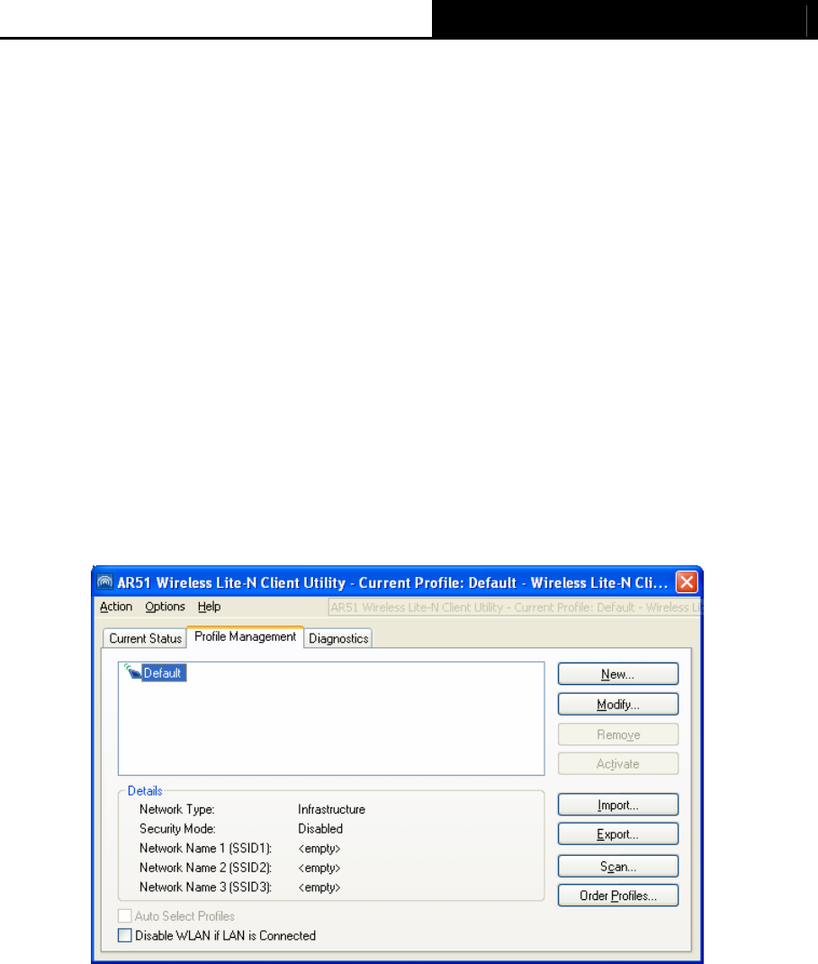Click the Profile Management tab of the AWCU and the next screen will appear (shown in