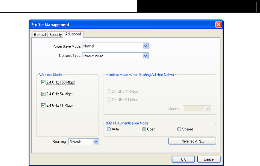 operation in an access point network. The Wireless adapter must match the wireless mode