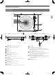 Part names and functions Overall diagram 5 5 EN 1 2 3 4 6 7 11 8 9 10 15 12 13 14 1 45 RPM adapter (shown in receptacle) Select the platter speed (33-1/3 or 45 RPM). 2 Platter 3 Rubber mat 4 Spindle 5 Dust cover hinge holders Attachment points for dust cover hinges. 6 Tonearm part For details, refer to “Tonearm” on p. 5. 7 Size selector Switch between 12" and 7", according to the size of the record. 8 Platter speed button Select the platter speed (33-1/3 or 45 RPM).