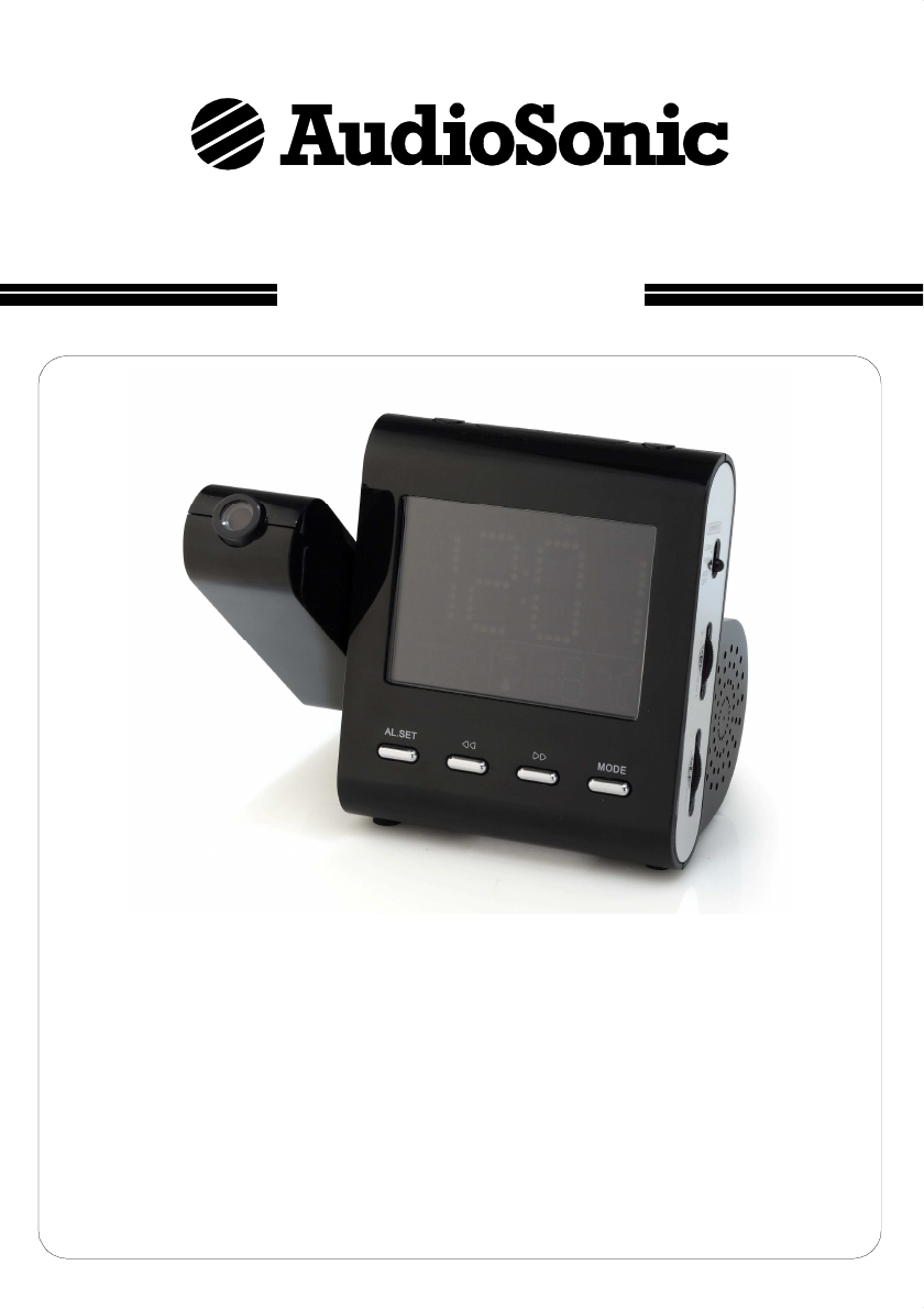 Instruction Manual Location of controls 1. PROJECTION UNIT 2. AM/FM BAND button 3. SNOOZE / SLEEP button 4. ON / OFF button 5. ALARM 1 RADIO / BUZZ button 6. ALARM 2 RADIO / BUZZ button 7. LINE IN JACK 8. RATING LABEL 9. RESET button 10. FOCUS ADJUSTMENT FOR PROJECTION UNIT 11. PROJECTION TIME 180° FLIP button 12. PROJECTION ON / OFF button 13. TEMPERATURE SENSOR (indoor) 14. FM ANTENNA 15. AC POWER CORD 16. ALARM SET button 17. << / MONTH-DAY / °C/°F button 18. >> / YEAR / DST button 19. MODE button 20.
