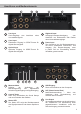 Connectors and control units 1 . 3 1 Line Input RCA inputs for connecting pre-amplifier signals. 2 Coax Input Electrical input for digital stereo signals (SPDIF format). 3 Optical Input Optical input for digital stereo signals (SPDIF format). 6 6 7 8 16 2 7 8 9 4 5 4 Highlevel Input Highlevel speaker inputs for connecting a factory radio or an aftermarket radio without lowlevel line outputs. 5 Power Input Connector for the DC power supply with an additional remote in- and output.