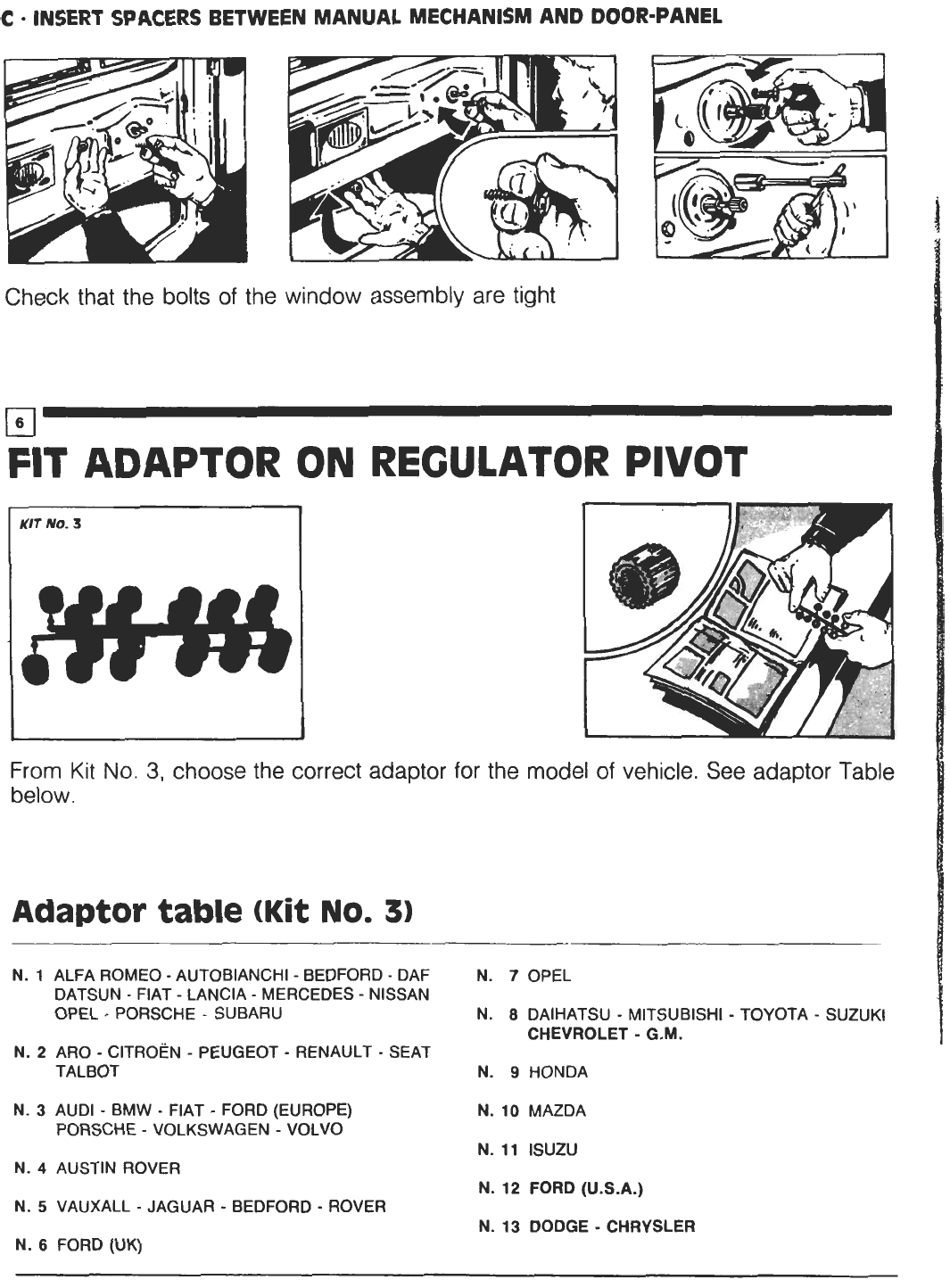 From Kit No.3, choose the correct adaptor for the model of vehicle. See adaptor Table