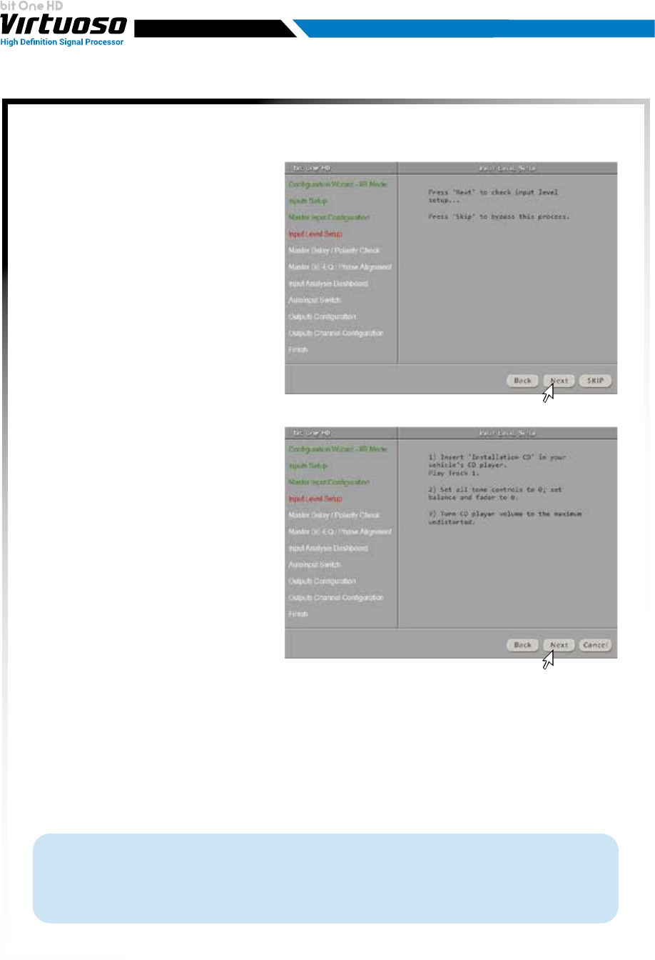 Important Remark: the head unit level must be elevated to the maximum undistorted level.