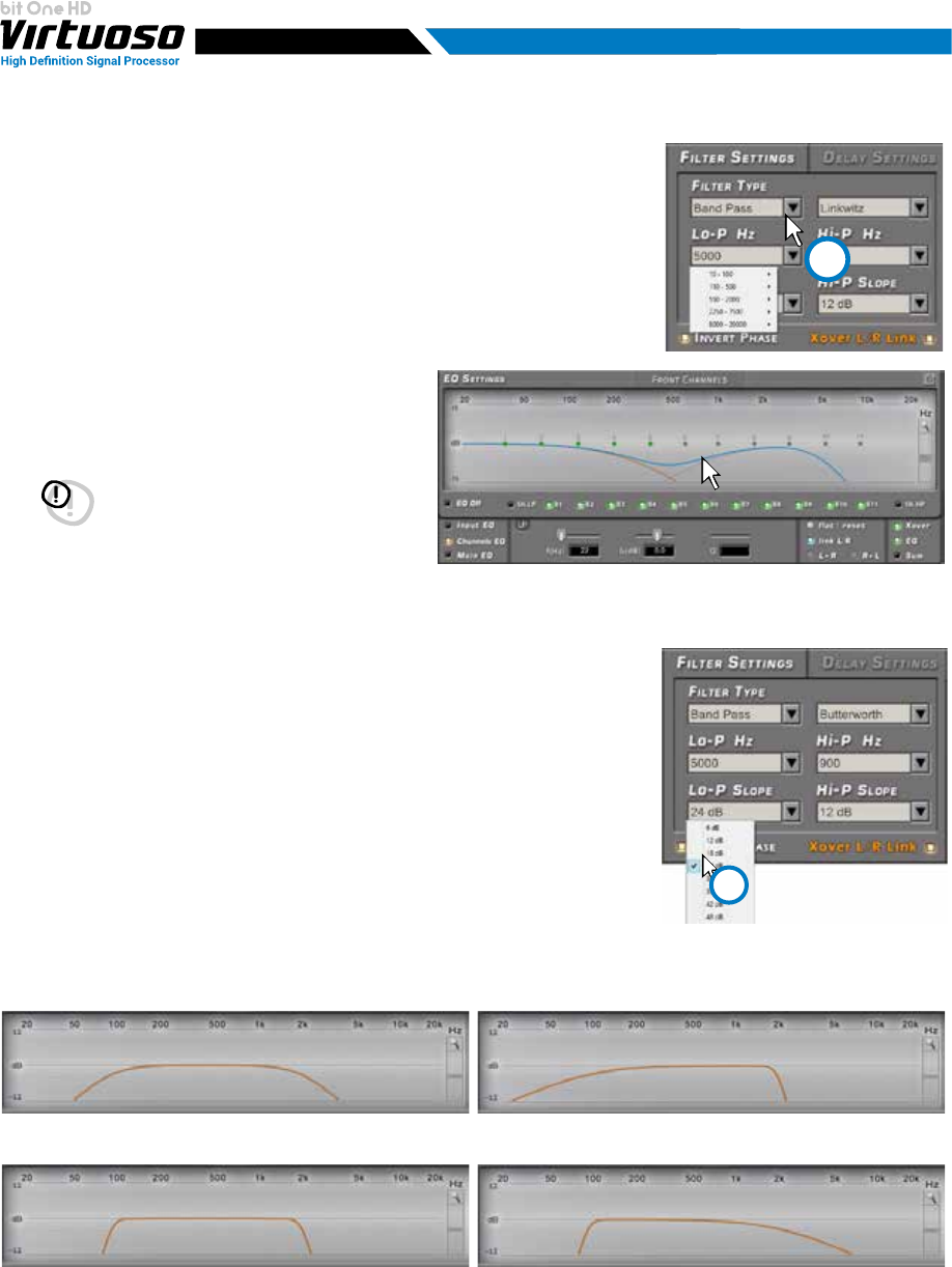If you selected Band Pass as lter type, the slope will be applied to both hi-pass and low-pass. With the Band
