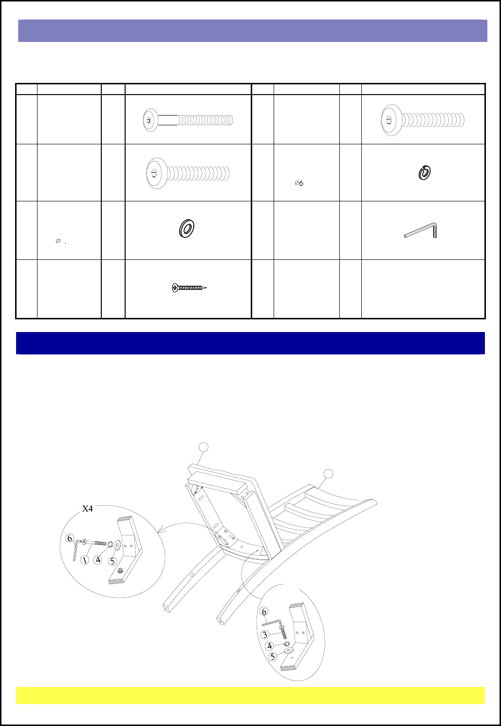 Note: DO NOT tighten any of the bolts, until the chair is assembled, then put on a flat level surface to