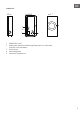 ES Subwoofer Parte delantera 1 2 3 4 5 Parte trasera Izquierda POWER (on/off) Indicador de conexión inalámbrica (rojo permanente: conectado, parpadeando: no conectado) Conexión CA Botón de conexión Altavoz del subwoofer 65