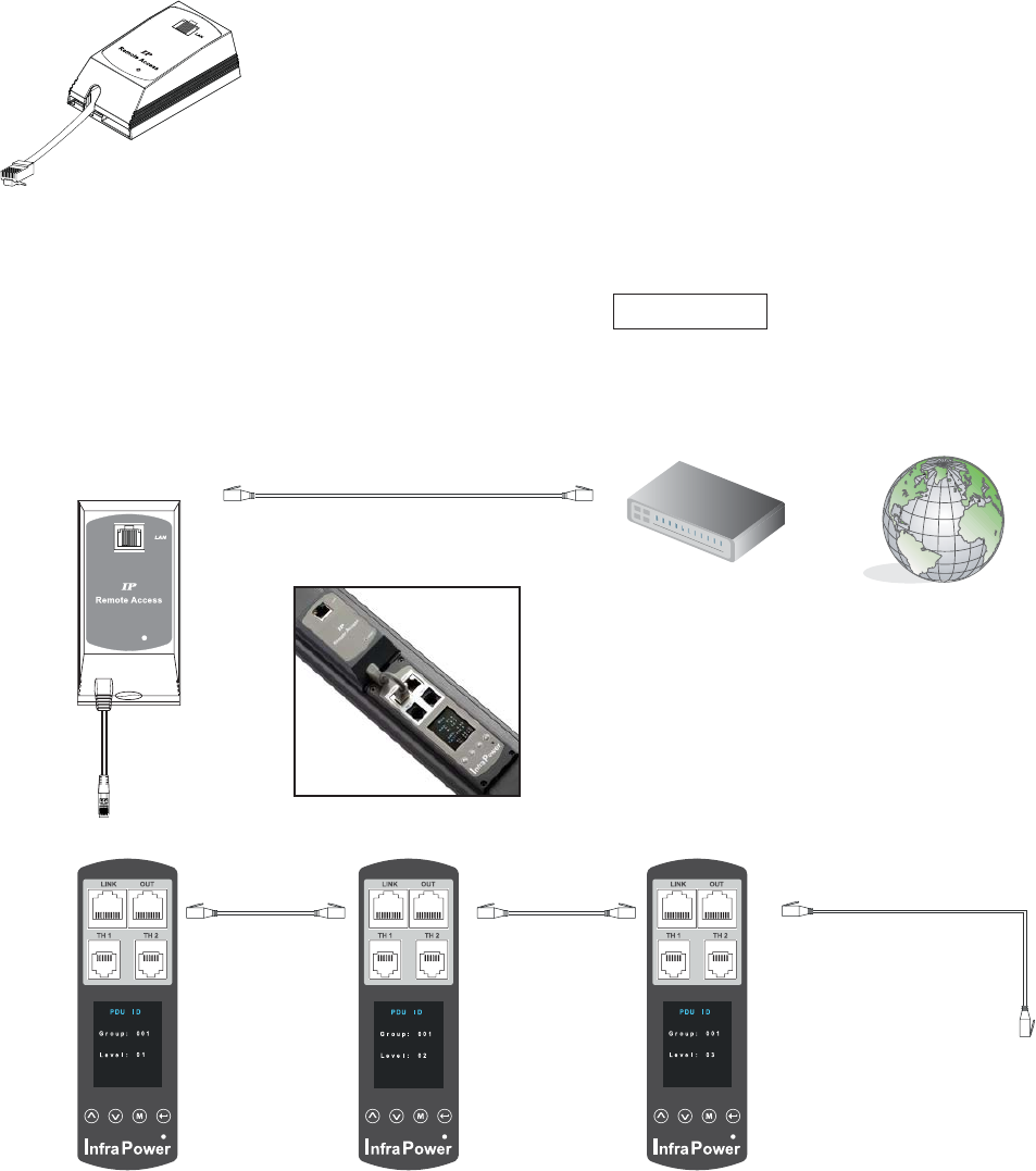 entire daisy chain group can be remote over IP. Hence, administrator can remotely access all PDUs in the daisy