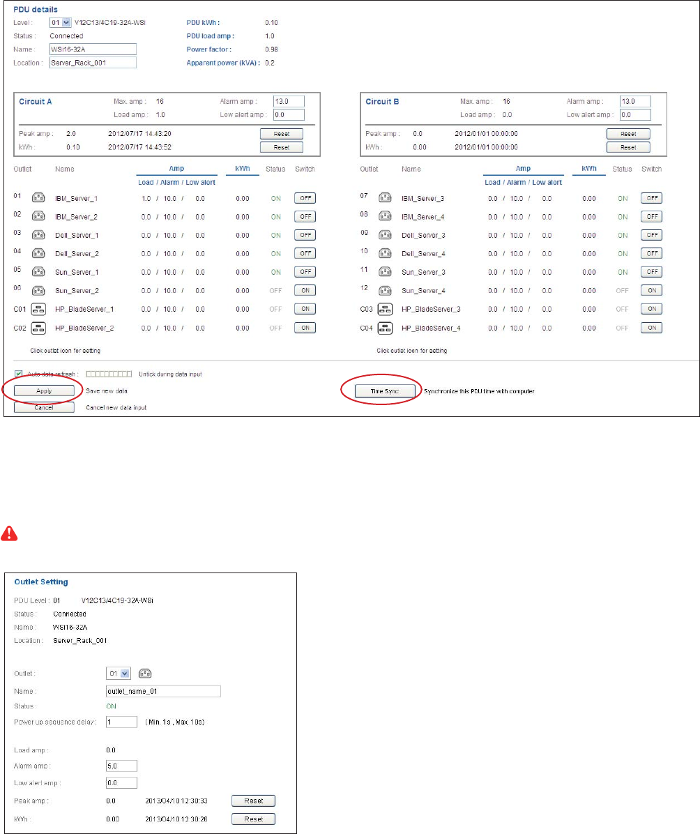 - Change “ Alarm amp. ” & “ Low alert amp. ” of PDU’s outlet