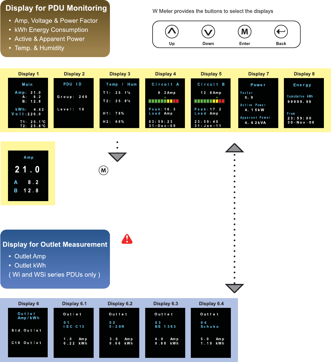 Volt ), Power ( kW ), Energy Consumption ( kWh ), Power Factor, Temperature & Humidity.