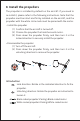 8. Install the propellers The propeller is installed by default on the aircraft. If you need to re-install it, please refer to the following instructions. Note that the propeller must be intact and firmly installed on the aircraft, and the propeller with the white circle mark must be paired with the motor. ·Install the propeller (1)Confirm that the aircraft is turned off. (2)Choose the propeller that matches each motor.