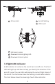 12 11 11 13 SD card slot 12 Aircraft battery 13 USB-C port 14 15 16 14 Ultrasonic sensor 15 Downward vision lighting LED 16 Downward vision system 3. Flight LED indicator A LED indicator is located on the end of each aircraft arm. The front LEDs will light up solid blue to help you identify the direction of the aircraft's nose. The rear LEDs will display the current flight status of the aircraft. The chart below shows the meaning of each status indicator.