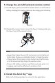 10. Power on (�)Hold the power button for � seconds to turn on the remote control. (�)Press and hold the power button for � seconds to turn on the aircraft. The battery indicator will then light up to show the current battery level of the aircraft. 11. Take off (�)Before taking off, please place the aircraft on a flat surface with the tail of the aircraft facing you. (�)Tilt the joystick inwardly or outwardly and hold for 1 second, as shown in the figure below.