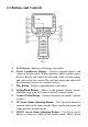 6) 7) 8) 9) 10) 11) 12) 13) DC Power Source Port – Connects the tool to the mains with the supplied charger to power on the tool or to charge battery. Micro SD card Slot – Holds the Micro SD card. Video-out Port – Connects the tool to a TV with the supplied video-out cable to view the real-time image. Mini USB Port – Connects the tool to a computer with the supplied USB cable to exchange information. Battery Compartment Cap- Indicates to install or remove the battery.