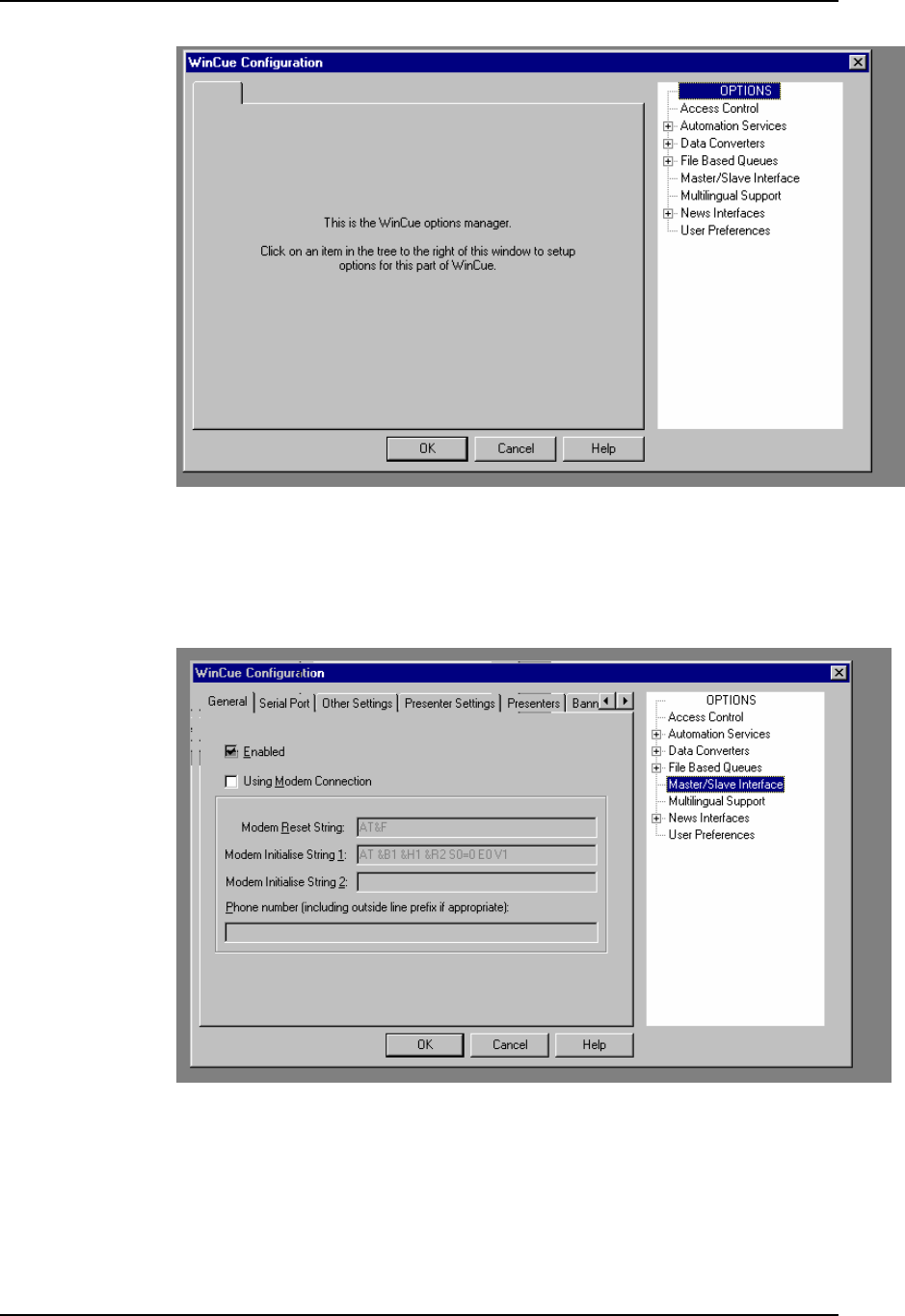 The Master/Slave Interface settings will appear opposite the Options list; by