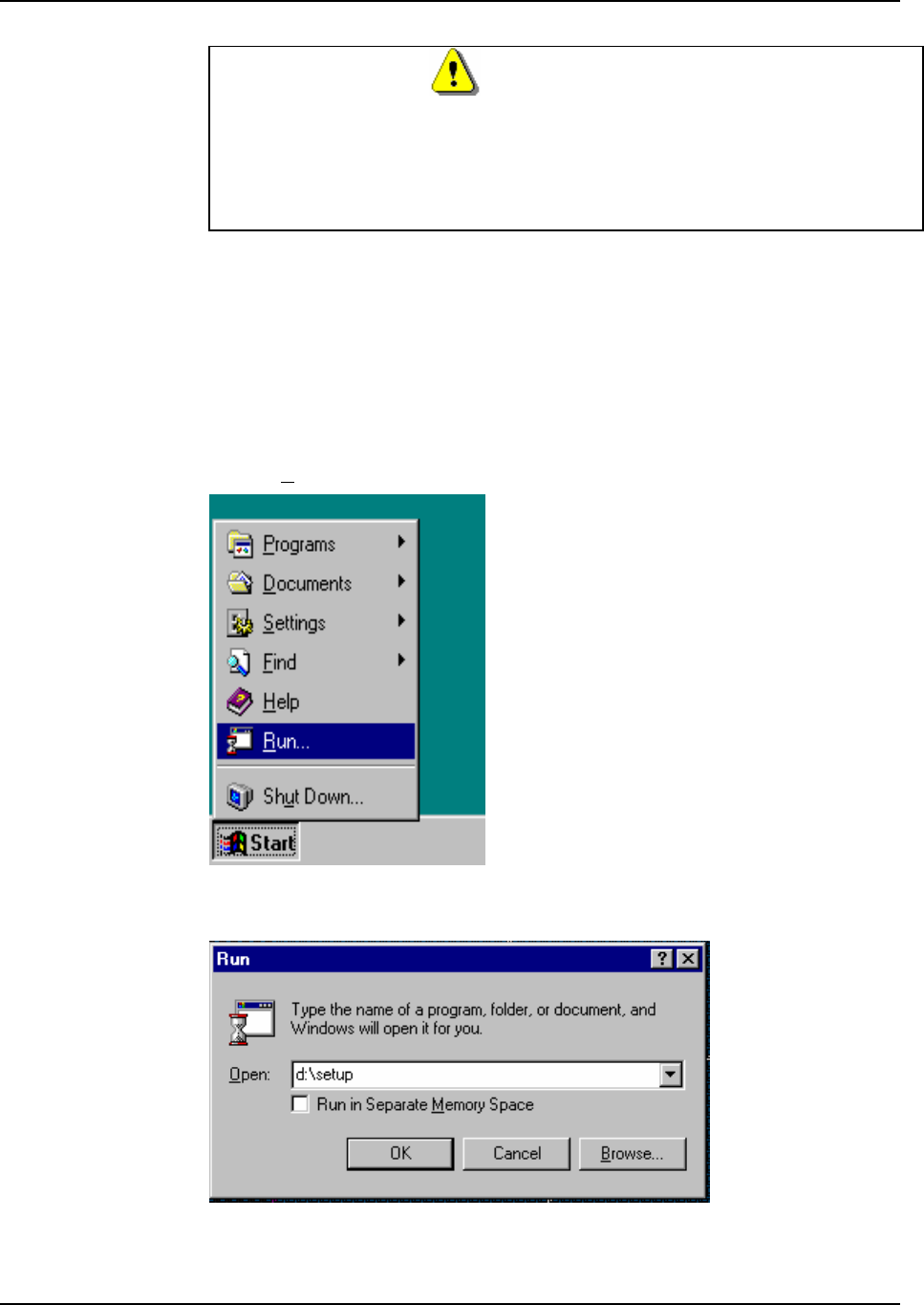 4. The Run dialog box appears. Type d:\setup in the Open: text box then click on