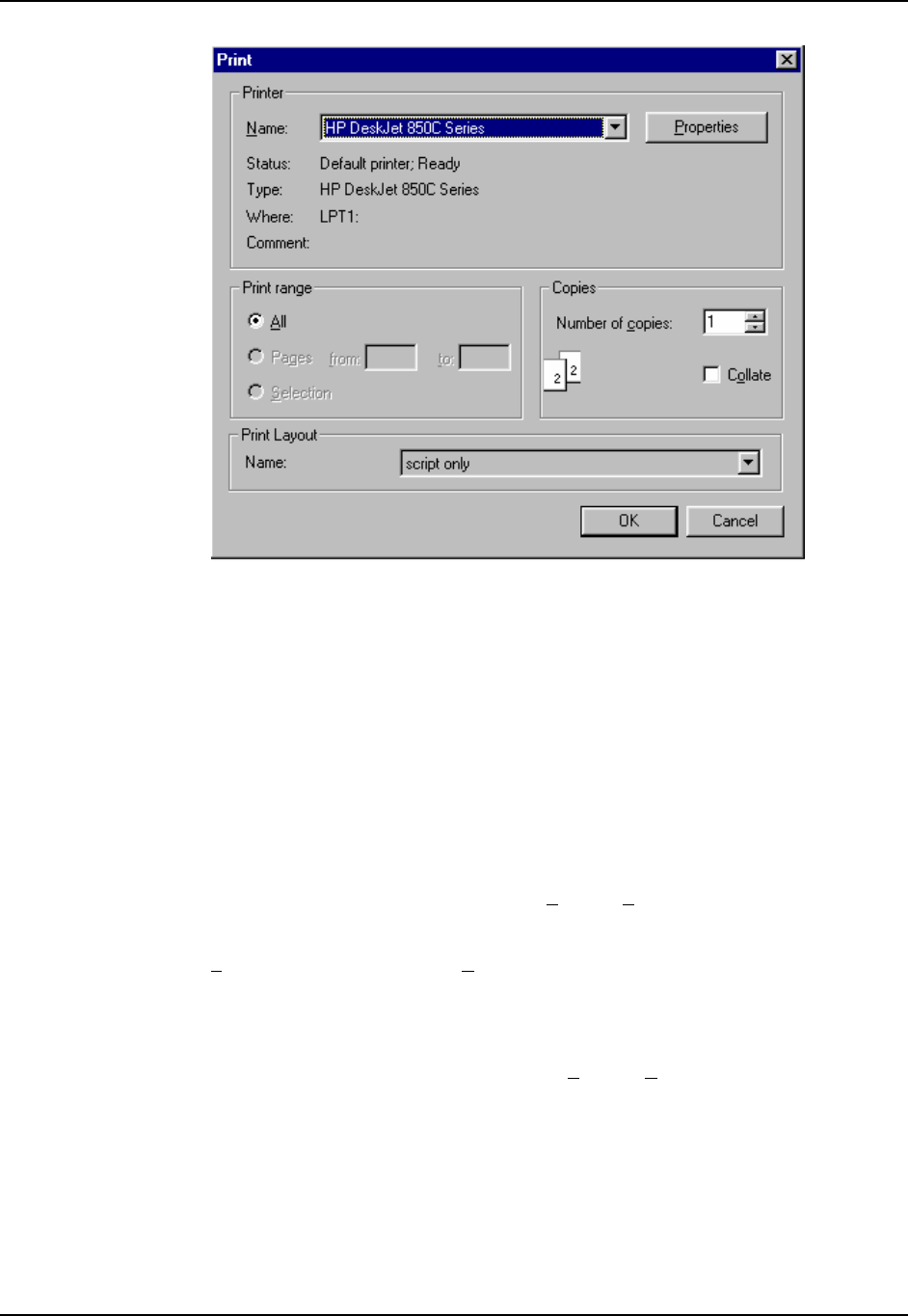 Choose the number of copies and ensure there is Print Layout Name selected. Click