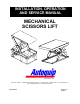 INSTALLATION, OPERATION AND SERVICE MANUAL MECHANICAL SCISSORS LIFT P.O. Box 1058 • 1058 West Industrial Avenue • Guthrie, OK 73044-1058 • 405-282-5200 • FAX: 405-282-8105 • www.autoquip.com Item # 830LA Version 1.