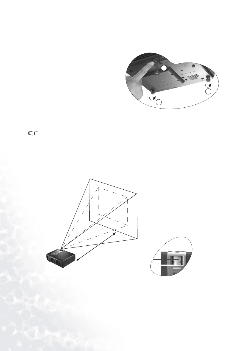adjusters change the image height and projection angle. To adjust the projector,