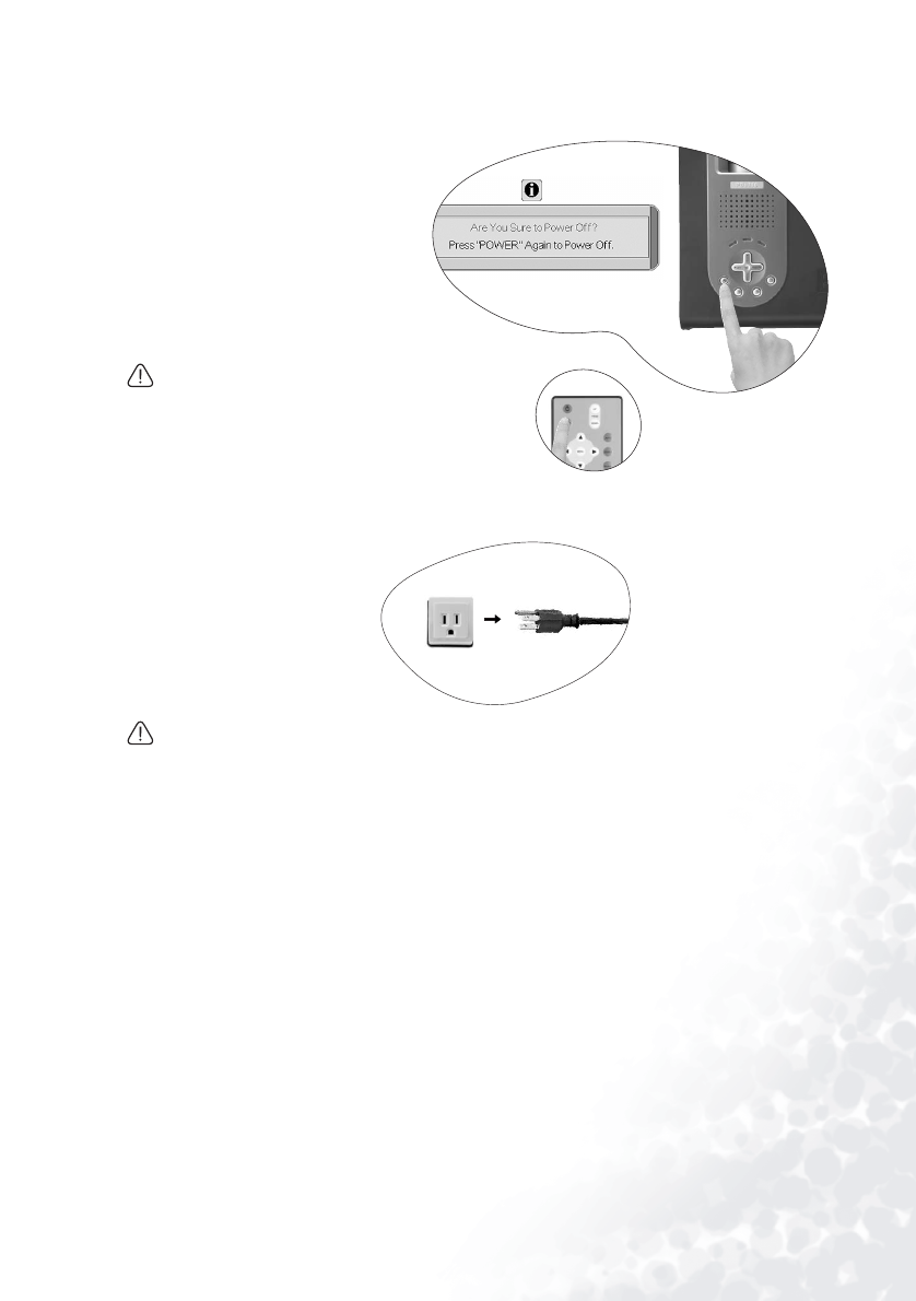 Do not unplug the power cord before the projector shutdown sequence is complete or during
