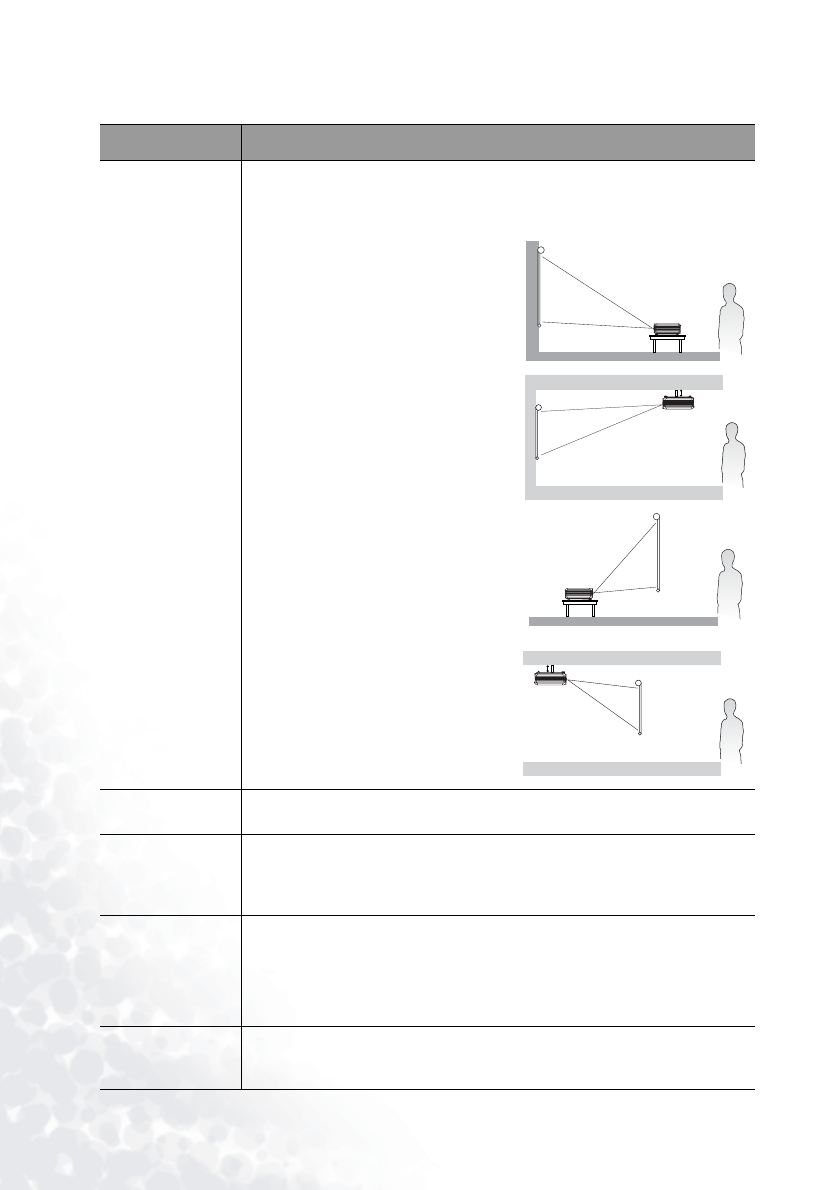 The projector can be installed on a ceiling or behind a screen, or with one