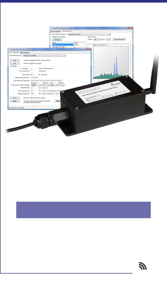 AW900R4 User’s Manual Thank you for your purchase of the AW900R4 Outdoor Wireless RS-485 Radio. If you have any questions when configuring your AvaLAN system, the best place to get answers is to visit www.avalanwireless.com. You will also find the latest updates there. If more assistance is needed, send email to support@avalanwireless.com. To speak to a live technician, please call technical support at the number below during normal business hours.