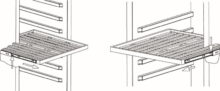 4. Push the front of the shelf inwards evenly until the shelf rests fully inside of the unit and you are able