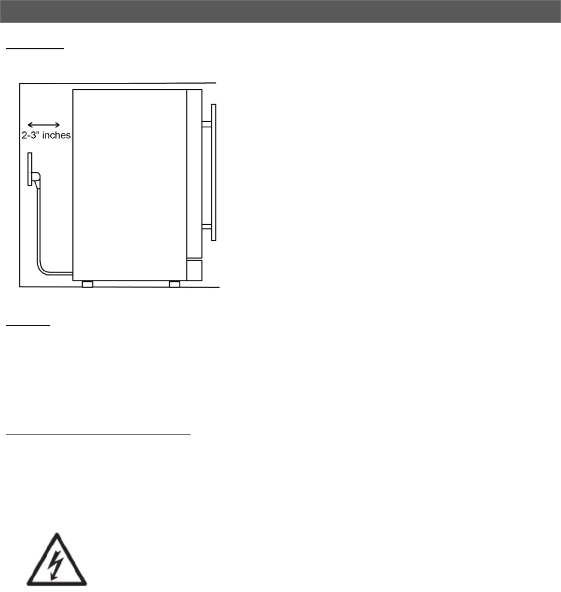 between2‐3inchesofclearanceatthebackasshown