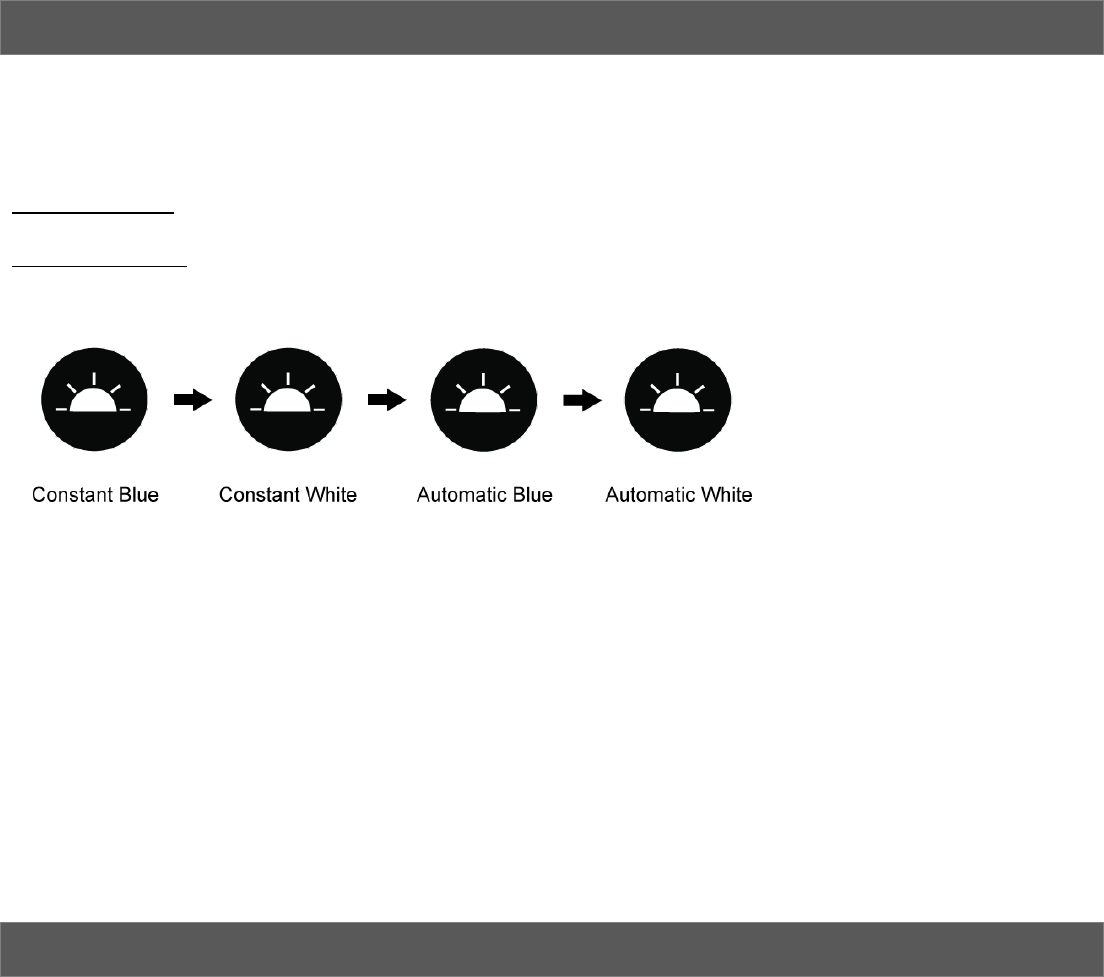 With each press of the light button, the unit will progress through the light setting cycle seen below.