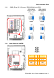 ECM-LX800 Series 2.4.3 Setting Jumper and Connector Line out / Speaker out Select (JP6) 2.54mm USB 1.1/2.0 Connector 1 (JP1) Line Out* Signal PIN PIN Signal +5V 1 2 GND D1- 3 4 GND D1+ 5 6 D2+ GND 7 8 D2- GND 9 10 +5V Speaker Out Note: Wrong USB cable configuration with your USB devices might cause your USB devices damaged. 2.