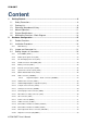 ECM-QM77 Content 1. Getting Started ........................................................................................................... 9 1.1 Safety Precautions ................................................................................................ 9 1.2 Packing List ........................................................................................................... 9 1.3 Document Amendment History ............................................................................ 10 1.