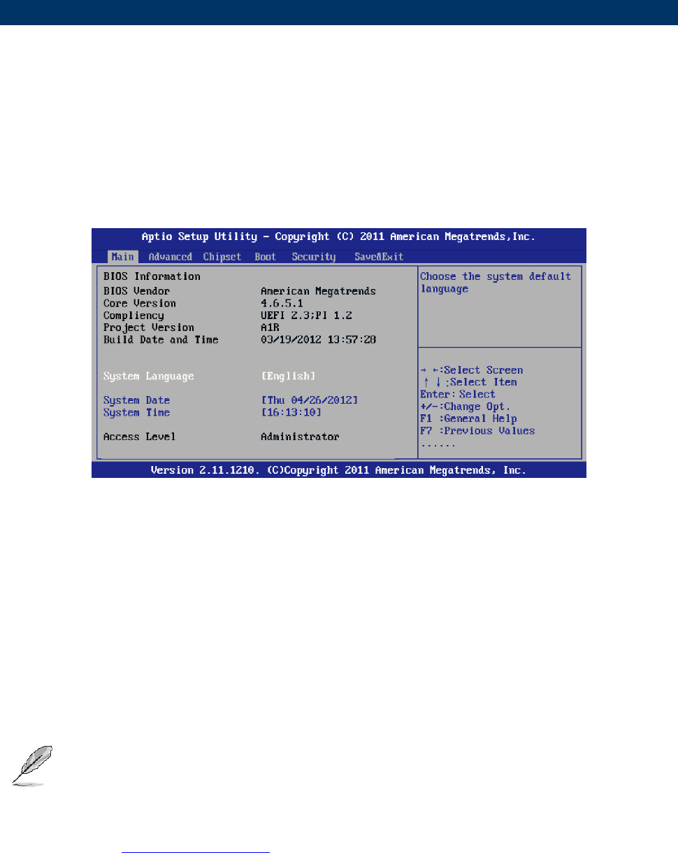 Note: BIOS setup screens shown in this chapter are for reference only, and may