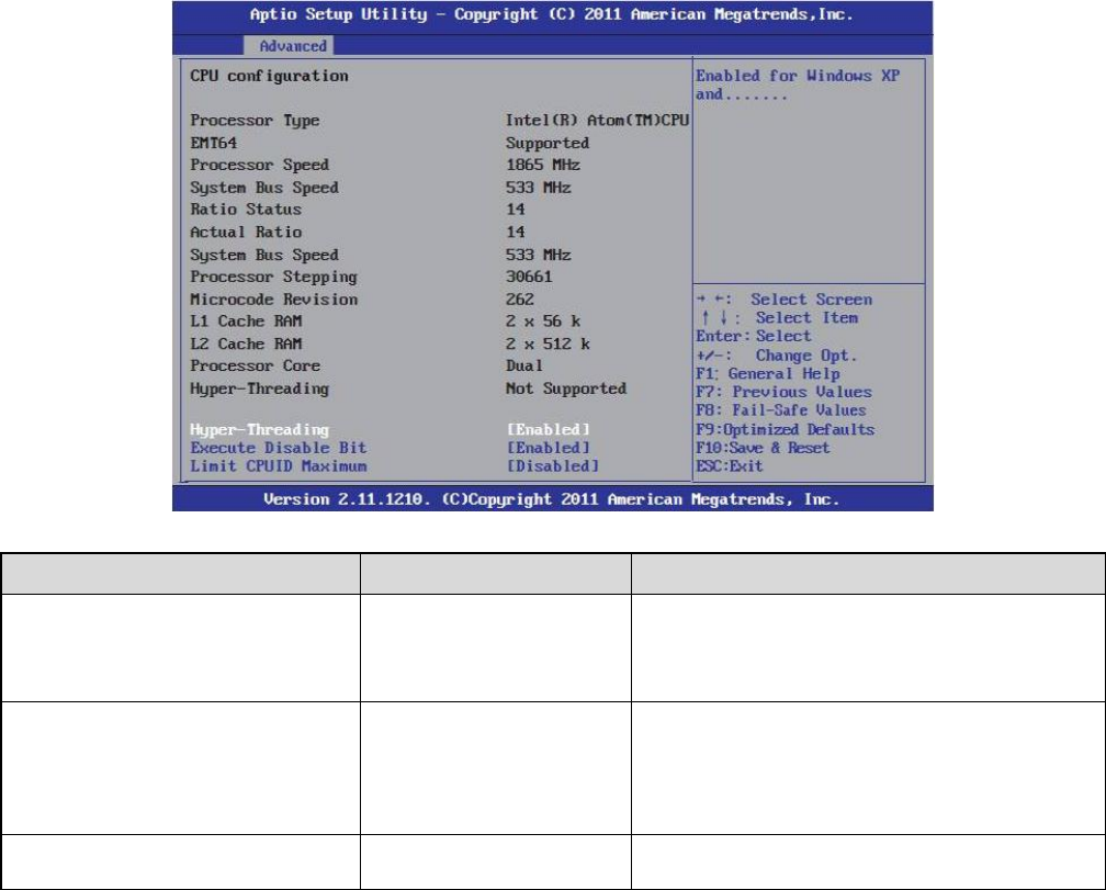 Use the CPU configuration menu to view detailed CPU specification and configure the
