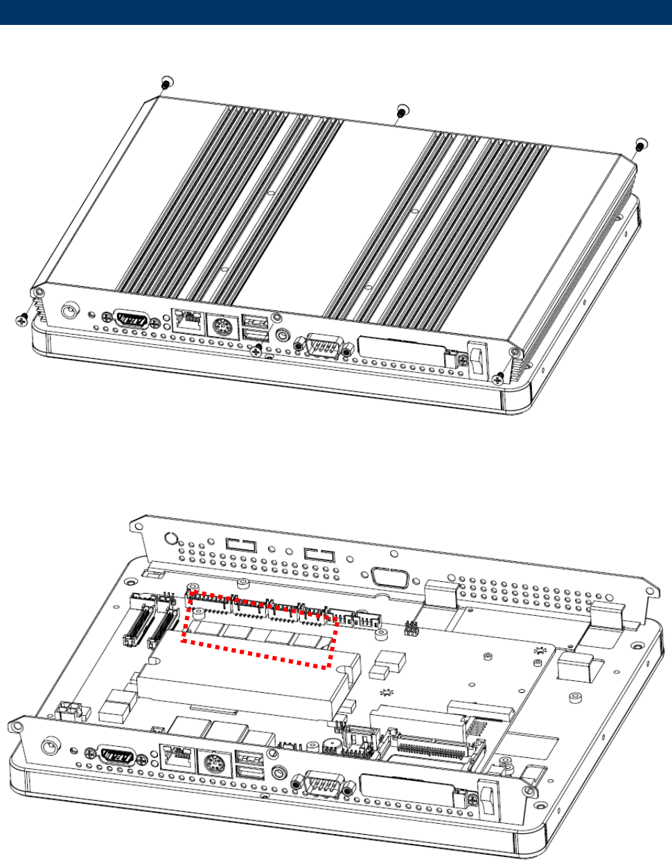 Unfasten 6 screws from the case. Then take off the top chassis.