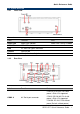 Quick Reference Guide 1.4 System Overview 1.4.1 Front View Connectors Label Function Note Power LED Power LED indicator Power LED is off by S3 Mode HDD LED HDD LED indicator USB 2 X USB 2.0 Type A connector Line-out Line-out jack Mic-in Microphone-in audio jack 1.4.2 Rear View Connectors Label COM1~6 Function Note 6 X Serial port connector COM 1/3/4: RS-232, Pin 9 with power/ +5V&+12V supported. COM 2: RS-232/485, Pin 9 with power/ +5V&+12V supported.
