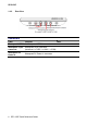 Quick Reference Guide 1.3 System Specifications Panel Board CPU System Chipset I/O Chip System Memory SSD EBM-CDV Onboard Intel® Cedarview D2550 1.86GHz CPU Intel NM10 Express E/C IT8518E One SODIMM socket supports up to 4GB DDR3 800/1066 SDRAM One CompactFlash Type I/ II Socket (Support optional InnoDisk CF-SATA) Hard Driver Bay One 2.5" SATA HDD Watchdog Timer Reset: 1 sec.~255 min. and 1 sec. or 1 min.