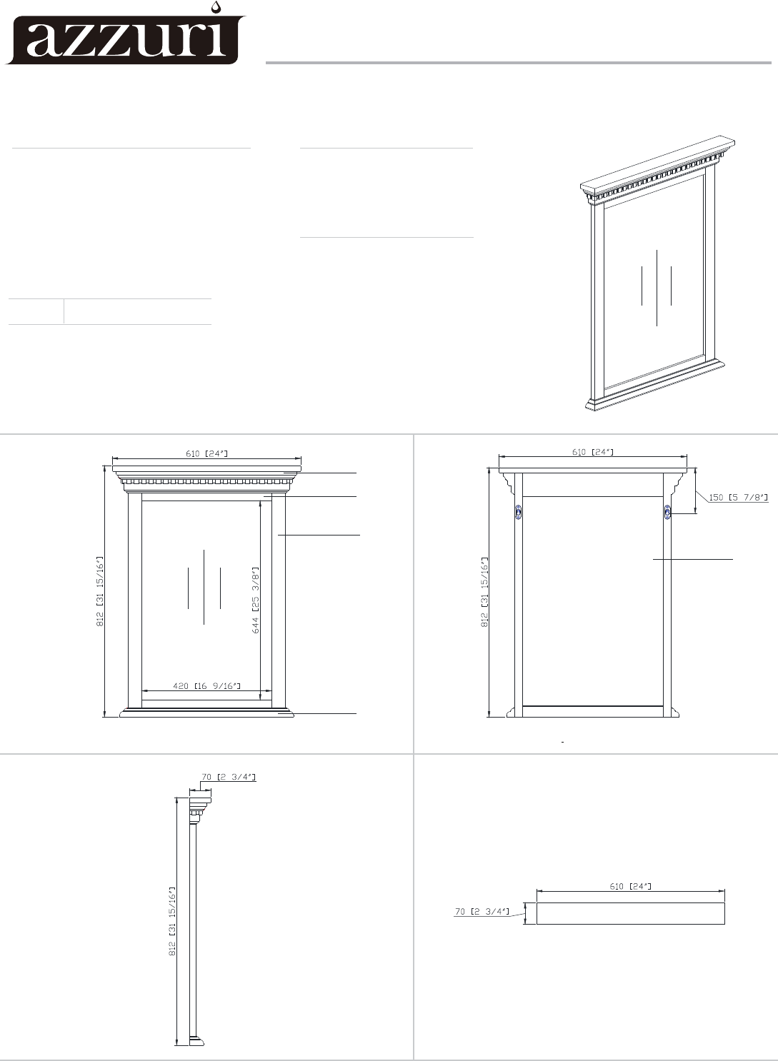 • 24W x 2 3/4D x 31 15/16H (inches)
