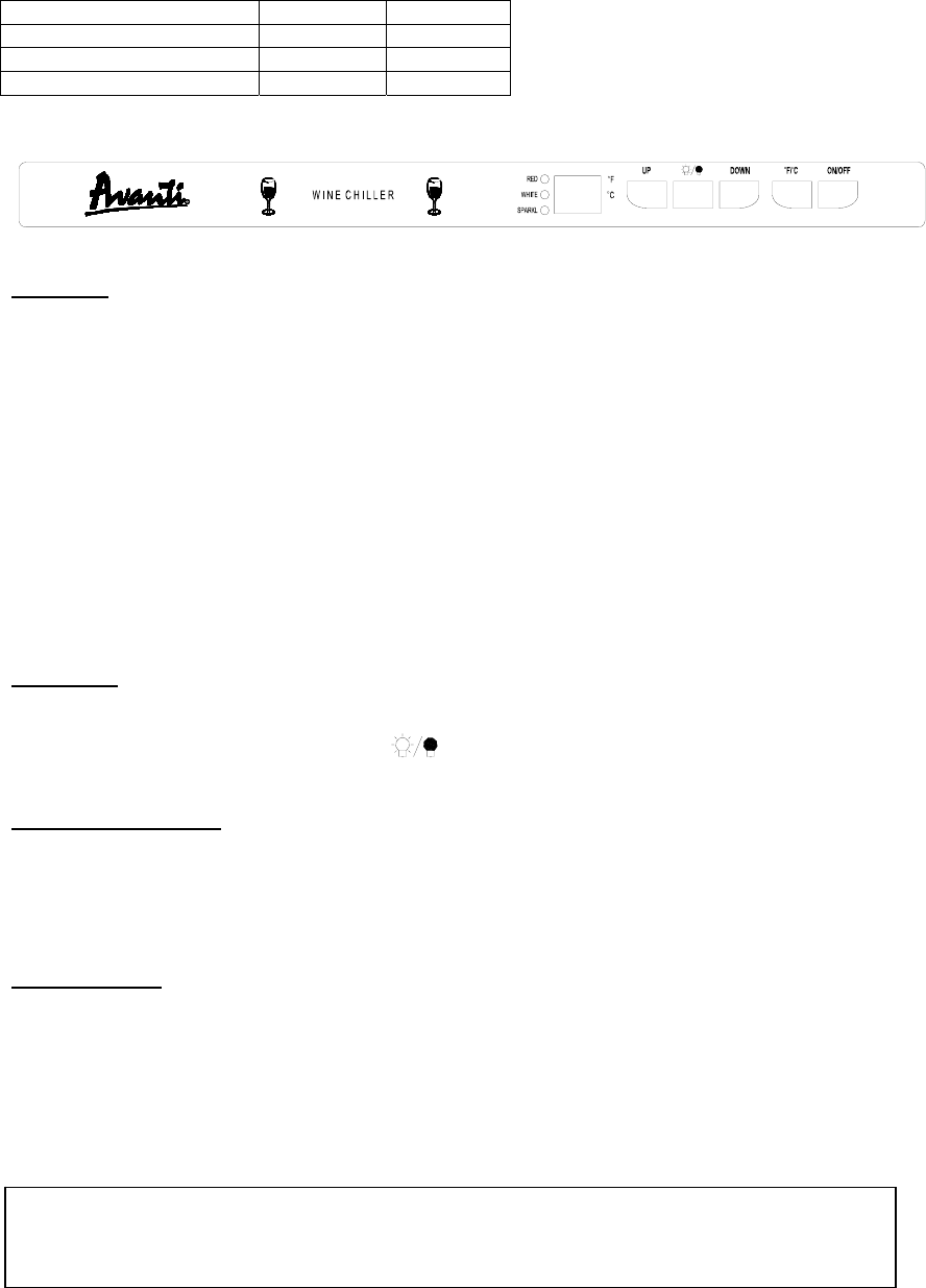 vinera mantendrá una temperatura entre 4º y 8º C. El indicador (pantalla digital) se alumbrara en