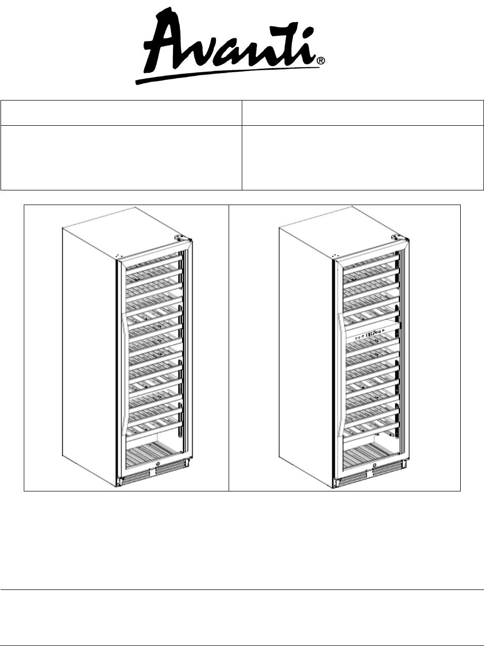 Model / Modelo / Modelé: WCF149SE3S / WCF148DE3S WINE CHILLER VINERA CELLIER INSTRUCTION MANUAL MANUAL DE INSTRUCCIONES MANUEL D’INSTRUCTIONS WCF149SE3S WCF148DE3S BEFORE USE, PLEASE READ AND FOLLOW ALL SAFETY RULES AND OPERATING INSTRUCTIONS. Avanti has a policy of continuous improvement on its products and reserves the right to change materials and specifications without notice. Avanti Products LLC P.O. Box 520604 Miami, FL 33152 www.avantiproducts.