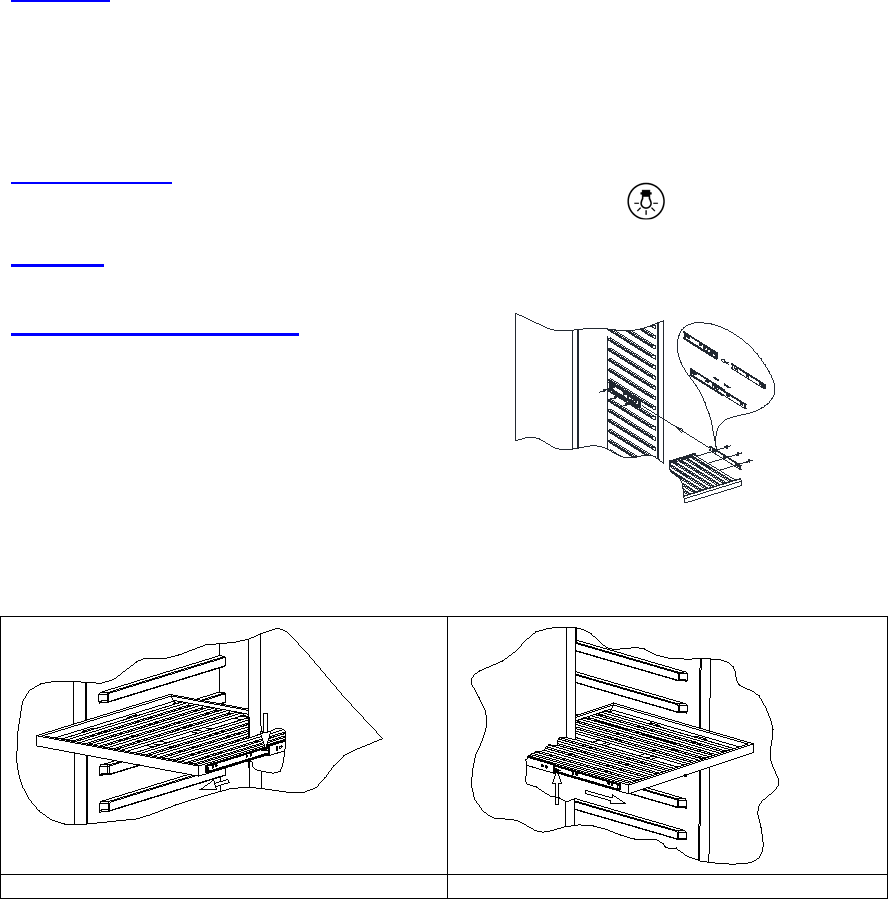 • To remove the shelves out of the rail pull each shelf approximately 1/3 out. Use a long flat