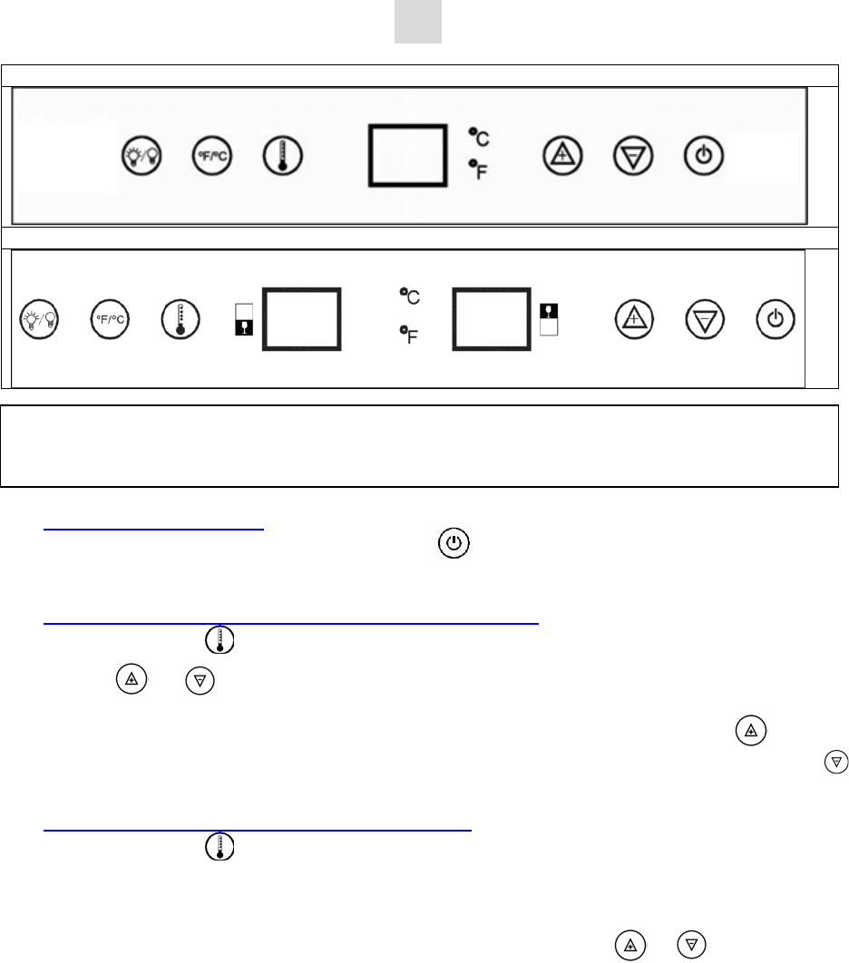 appuyer sur et boutons / marques pour contrôler la température interne.