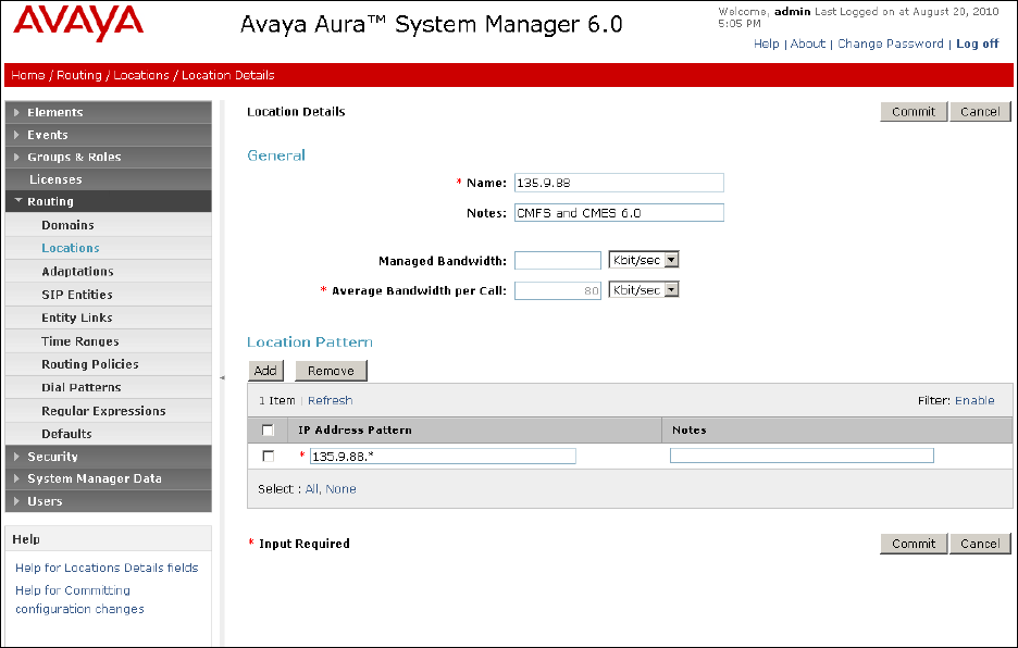In the Location Pattern Section, under IP Address Pattern enter pattern used to