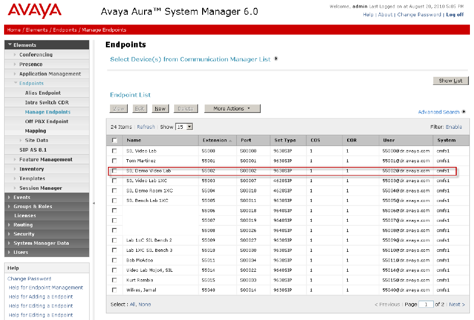 Verify SIP users have been created in the Session Manager. In the sample configuration,