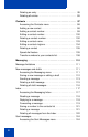 Deleting an entry . . . . . . . . . . . . . . . . . . . . . . . . . . . . . . . 95 Deleting all entries . . . . . . . . . . . . . . . . . . . . . . . . . . . . . . 95 Contacts . . . . . . . . . . . . . . . . . . . . . . . . . . . . . . . . . . . . . . . . 97 Accessing the Contacts menu . . . . . . . . . . . . . . . . . . . . . 98 Adding a new contact . . . . . . . . . . . . . . . . . . . . . . . . . . . . 98 Adding a contact number . . . . . . . . . . . . . . . . . . . . . . . . .