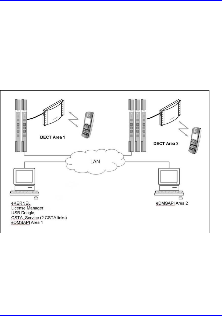 shown in Figure 17 "Connecting to two DECT systems" (page 87).