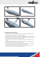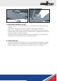 3. Installation of main wing • • • • • • • • The main wing centre piece houses the motors, ESC’s, flaps, flap servos and main wiring harness. Please centre all servos, flex the ailerons on the outer wing panels. Connect all control rods to the cont rol horns with the supplied hardware to the flaps and Ailerons. Make the wiring harness is labelled and organised then bundled together to keep the wiring harness from getting caught between the main centre wing and fuselage.