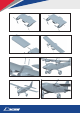 ASSEMBLY 1. Vertical and Horizontal Tail Surfaces • Flex all control surfaces (Elevator and rudder) to loosen the hinge joint. • Attach the Horizontal tailplane and then insert the vertical stabilizer with the front first then home the rear of the vertical stabilizer. Make sure this is a secure firm fit. Use 2 2mm x 45mm self-tapping screws to mount the tail surfaces to the rear of the fuselage.