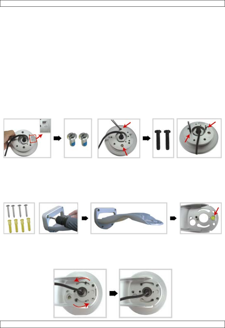 • Fixer la caméra au support avec les deux vis de la base de montage, et faire tourner la caméra (voir