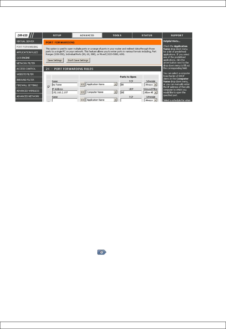 L'exemple ci-dessous illustre l'écran pour un routeur D-Link : sélectionner l'onglet " Advanced " et